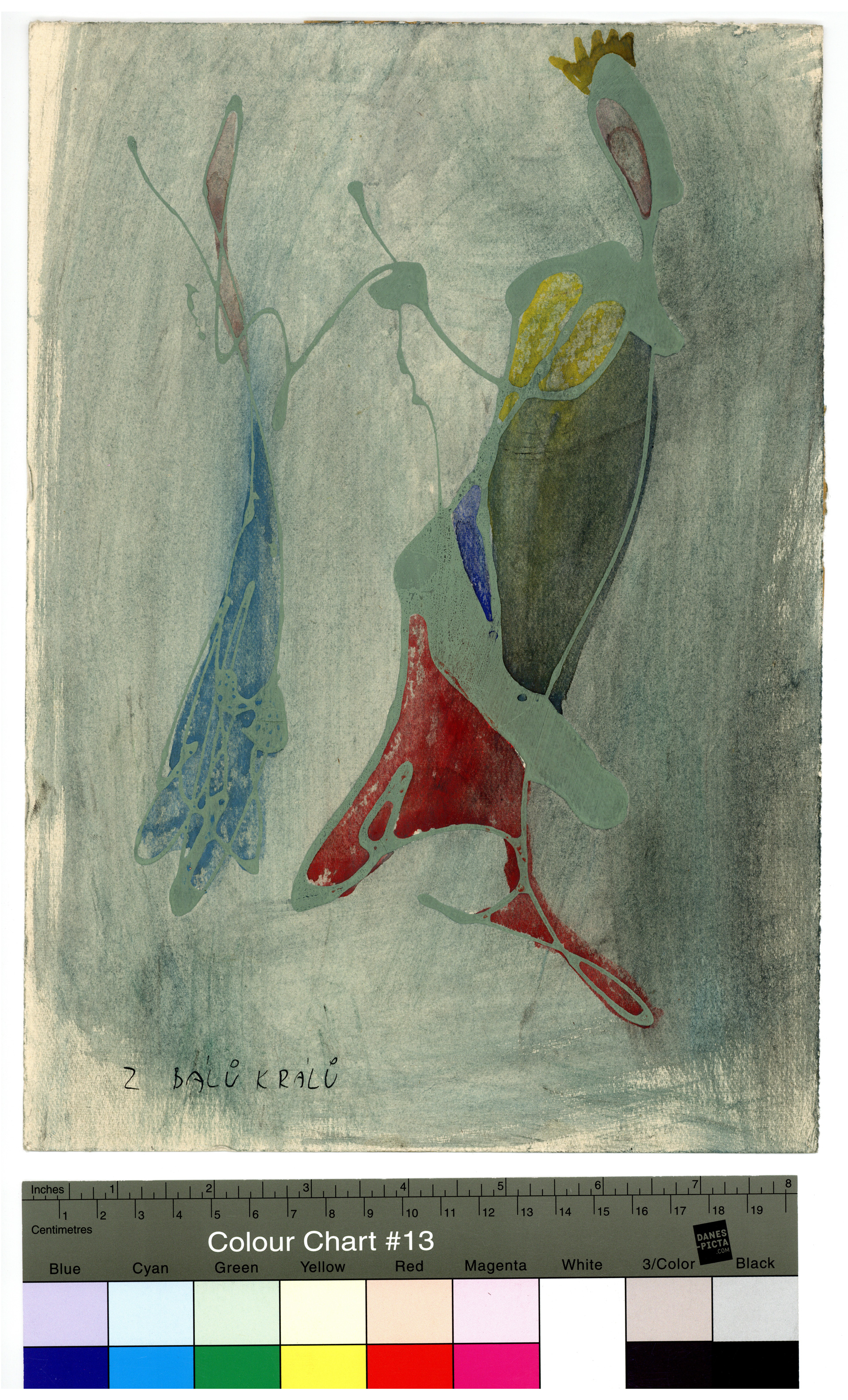 Kombinovaná technika na papíře, 240 × 330 mm.