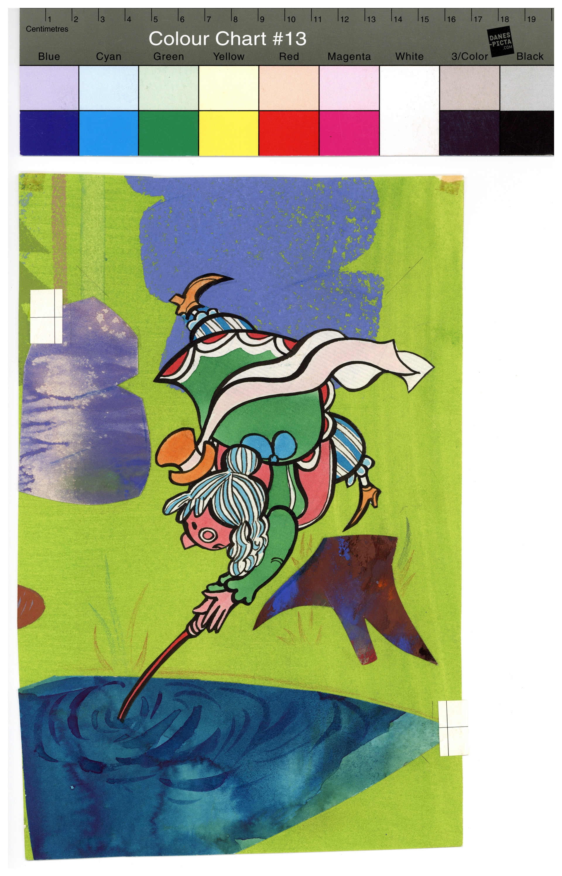 Popis: Kolorovaná kresba a koláž na papíře. Ilustrace k příběhu Václava Čtvrtka.