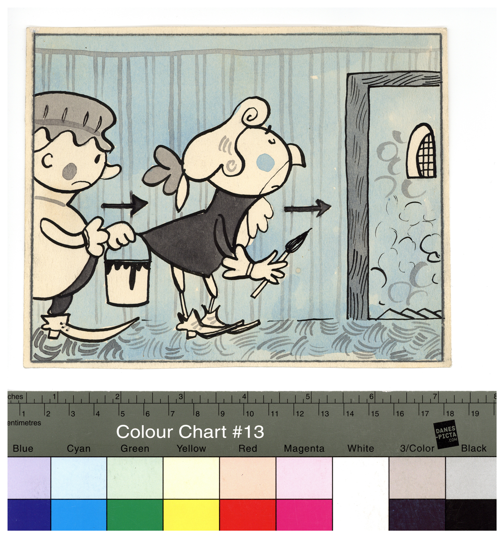 Popis: Lavírovaná kresba tuší, akvarel, papír. Ilustrace k druhému pokračování komentovaného seriálu Rumcajs pro časopis S 32 (Svět sovětů).