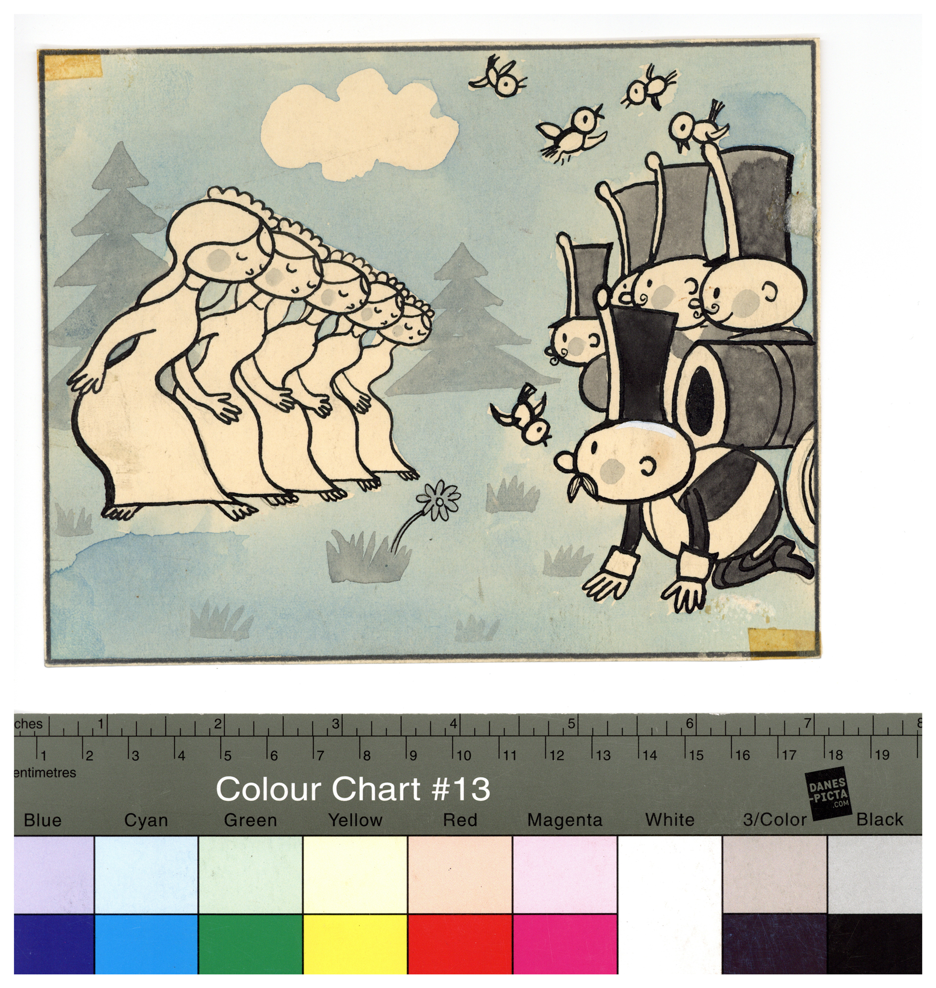 Popis: Lavírovaná kresba tuší, akvarel, papír. Ilustrace ke třetímu pokračování komentovaného seriálu Rumcajs pro časopis S 32 (Svět sovětů).