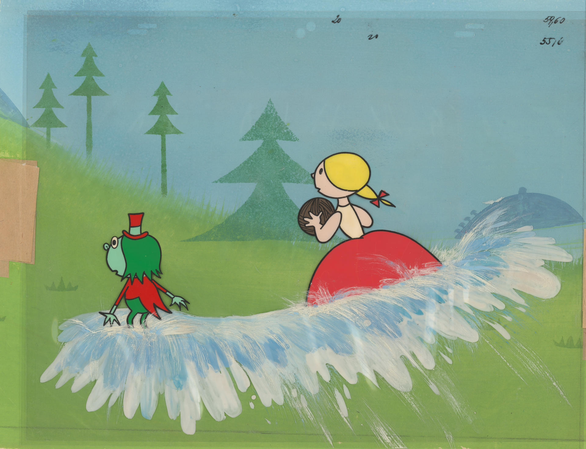Popis: Tempera na kartonu, ultrafán, 37 × 28 cm. Upravená scéna z kresleného seriálu O loupežníku Rumcajsovi, který pro Československou televizi vyrobil Krátký film Praha v roce 1969.