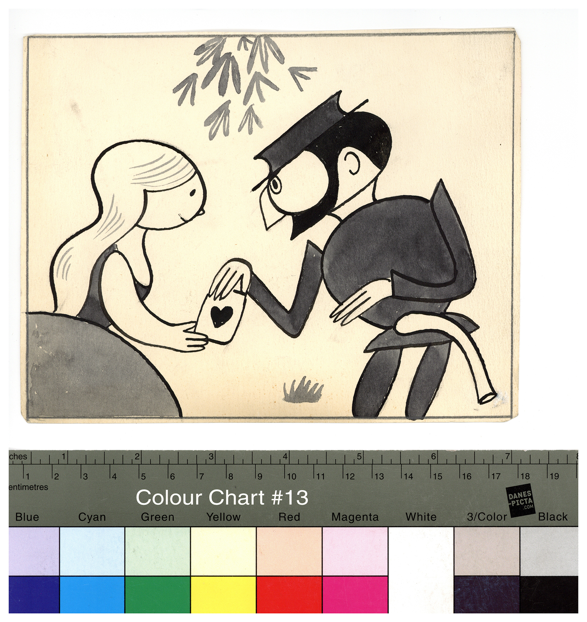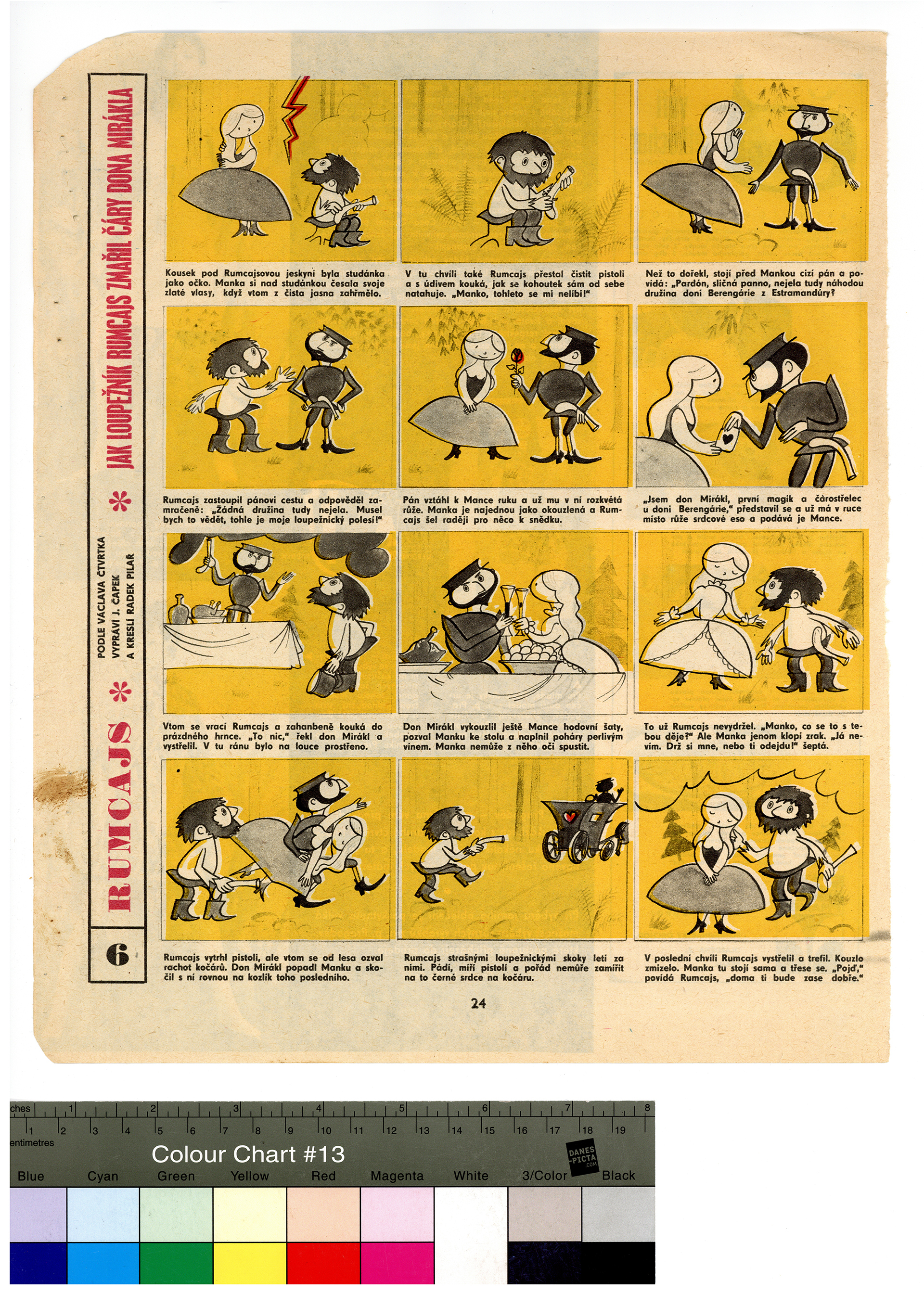 Popis: Lavírovaná kresba tuší, papír. Ilustrace k šestému pokračování seriálu Rumcajs pro časopis S 32 (Svět sovětů).