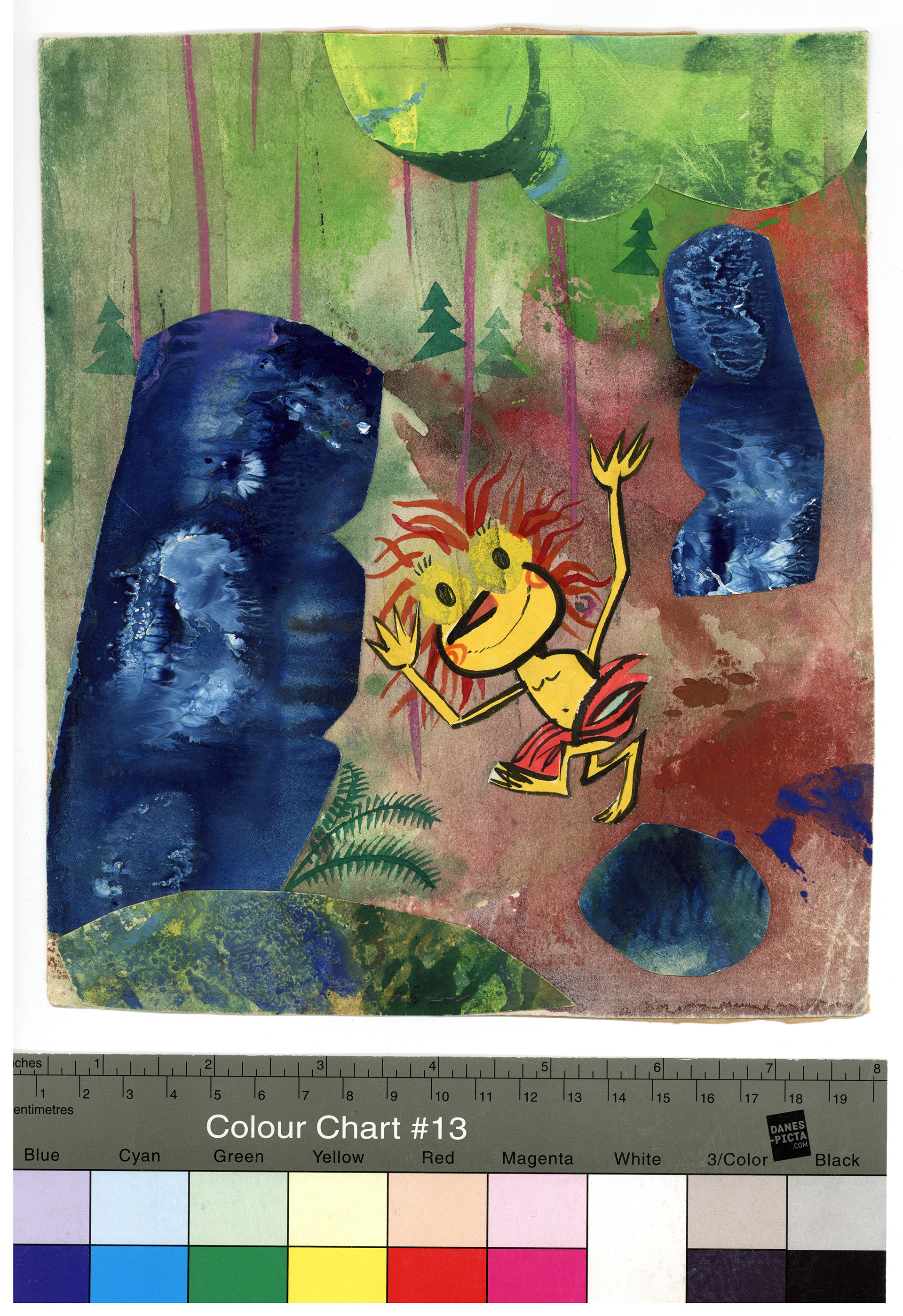 Popis: Kolorovaná kresba, koláž, tempera, papír, 188 × 225 mm.