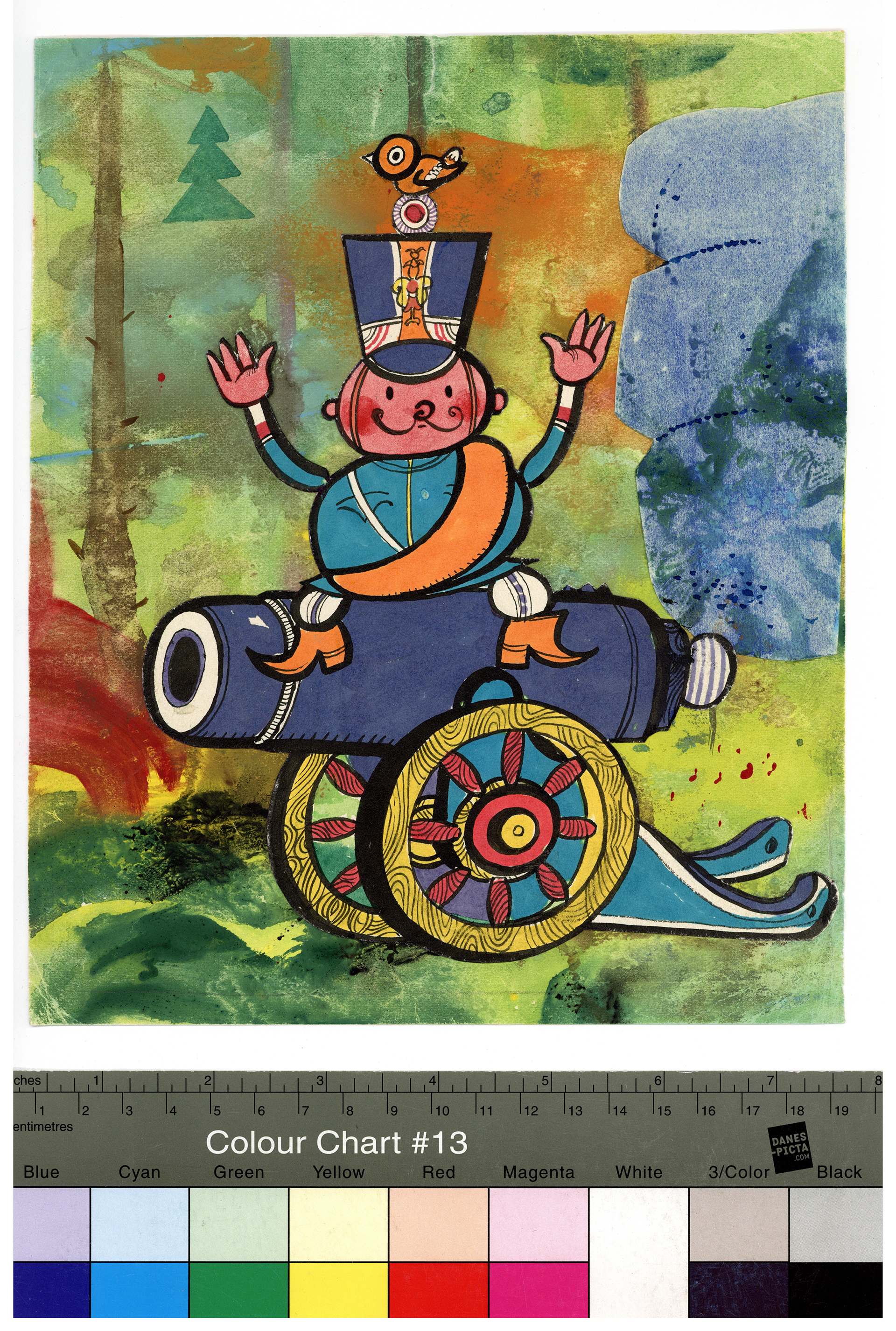 Popis: Kolorovaná kresba na papíře, 185 × 225 mm. Ilustrace ke knize Rumcajs.