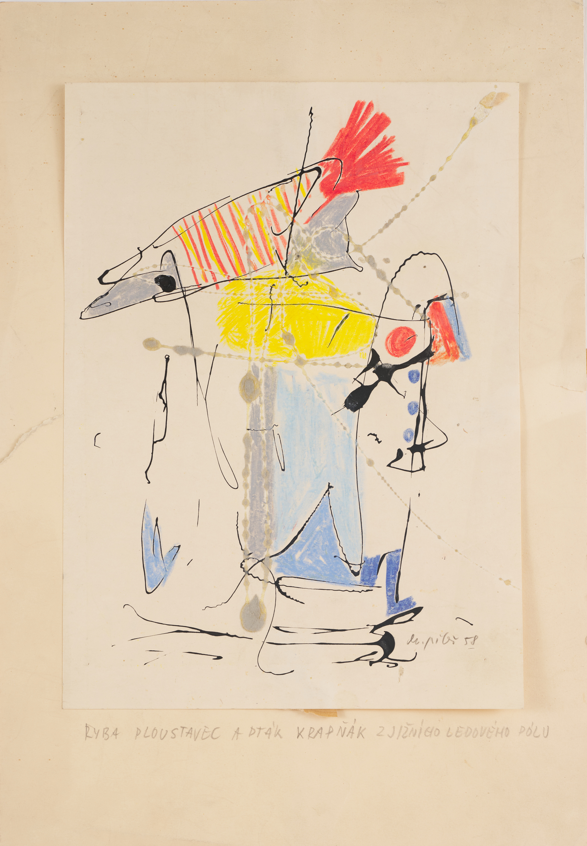Kombinovaná technika, papír, 310 × 450 mm.