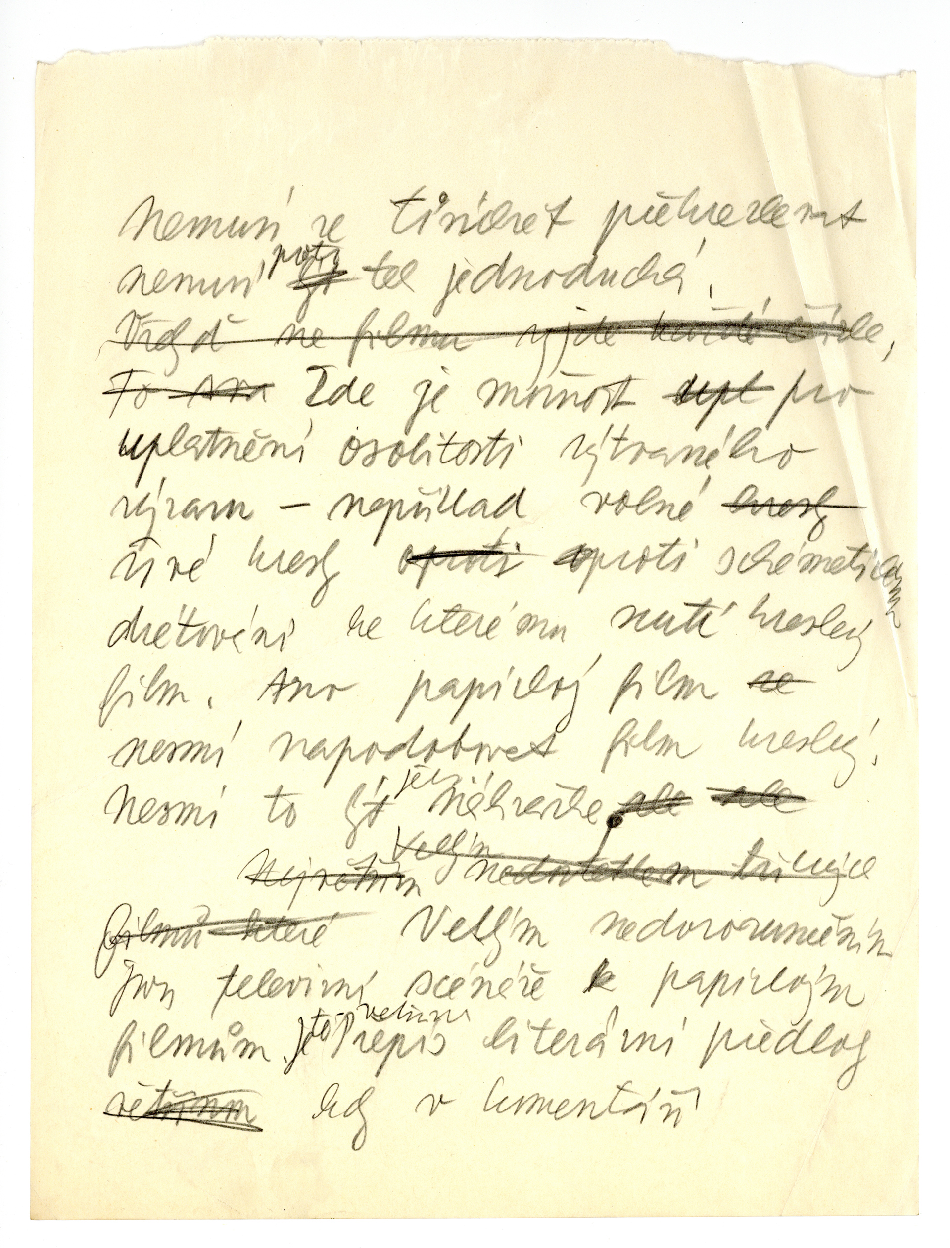 Popis: Rukopis, 9 stran. Text reaguje na stať Ladislava Smoljaka Televize a umění (ze sborníku Čtyřikrát o televizi, Československý spisovatel, 1961, s. 99–134). Pilař se zamýšlí nad aktuální situací v tvorbě animovaných filmů pro televizní obrazovky, vyžaduje účast výtvarníka na přípravě scénáře a proti pevné obrysové kresbě prosazuje papírkovou (ploškovou) loutku.