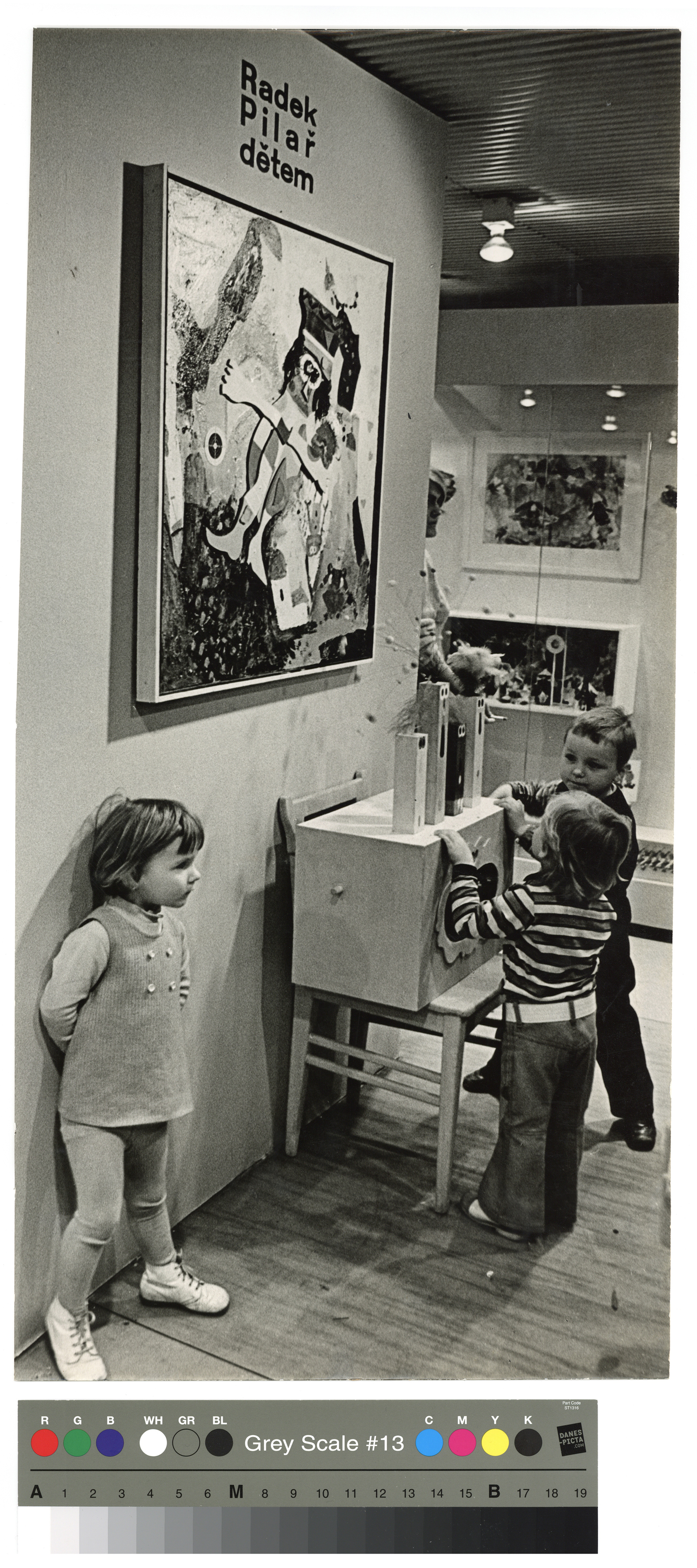 Popis: Snímek z výstavy v Galerii Albatros, Dům dětské knihy, Na Perštýně, Praha. Foto: Miloslav Šebek.