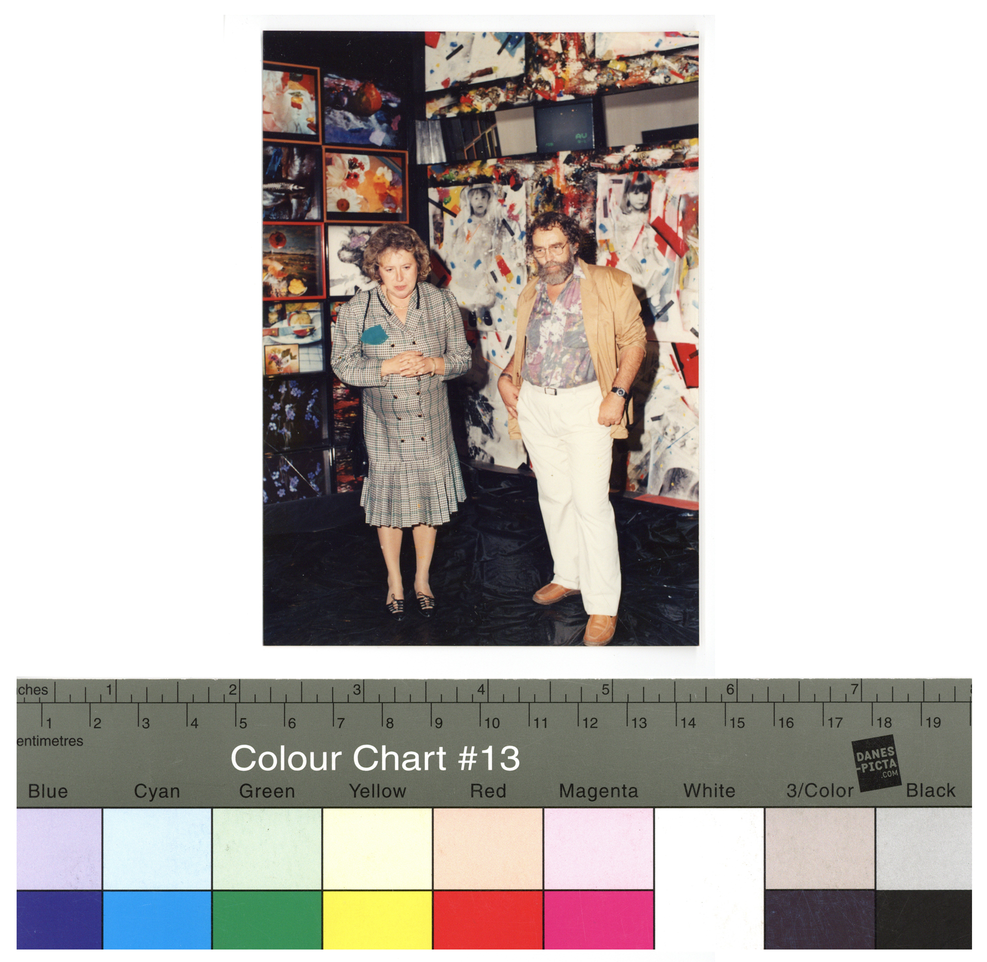 Popis: Radek Pilař a Vlasta Čiháková-Noshiro na vernisáži výstavy Absolutní opona v Galerii bratří Čapků, Praha 3. října 1991. Vlasta Čiháková-Noshiro napsala do katalogu text Superrealita spektakulárního prostoru.