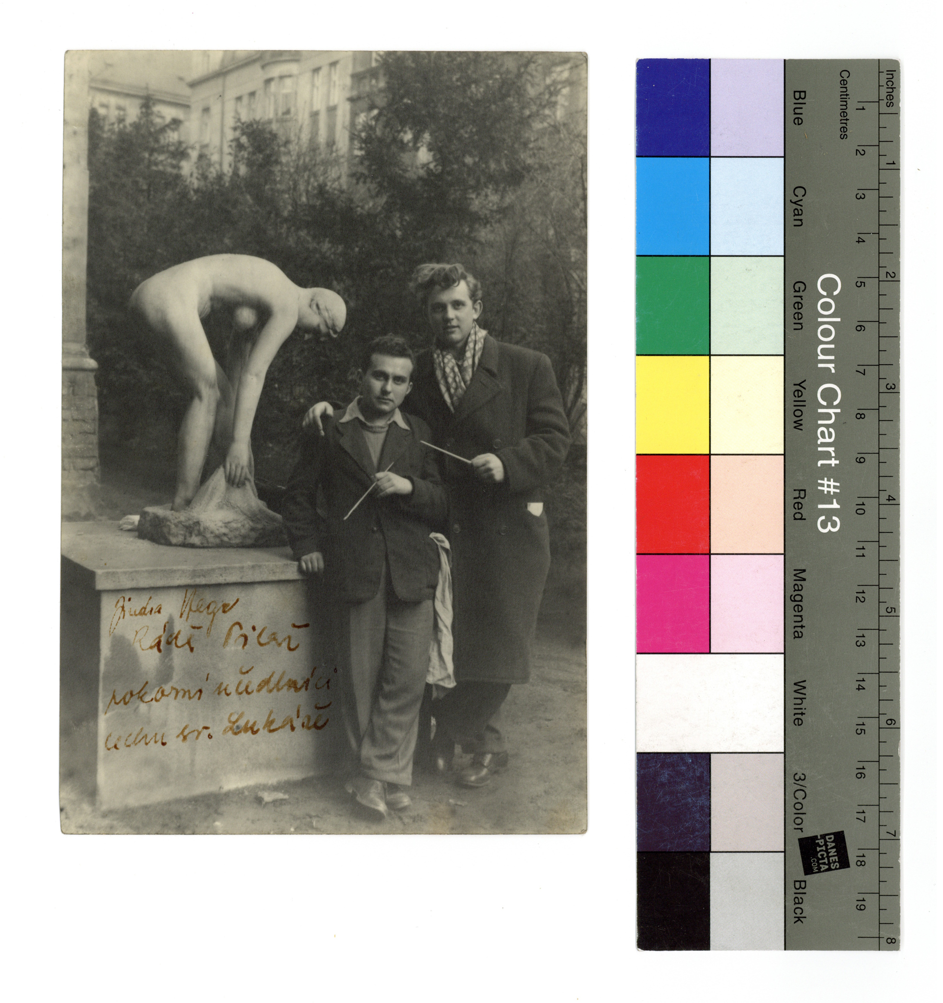 Popis: Radek Pilař se spolužákem z AVU Jindřichem Hegrem (1933–2015). Přípis na snímku: „Pokorní učedlníci cechu sv. Lukáše“.