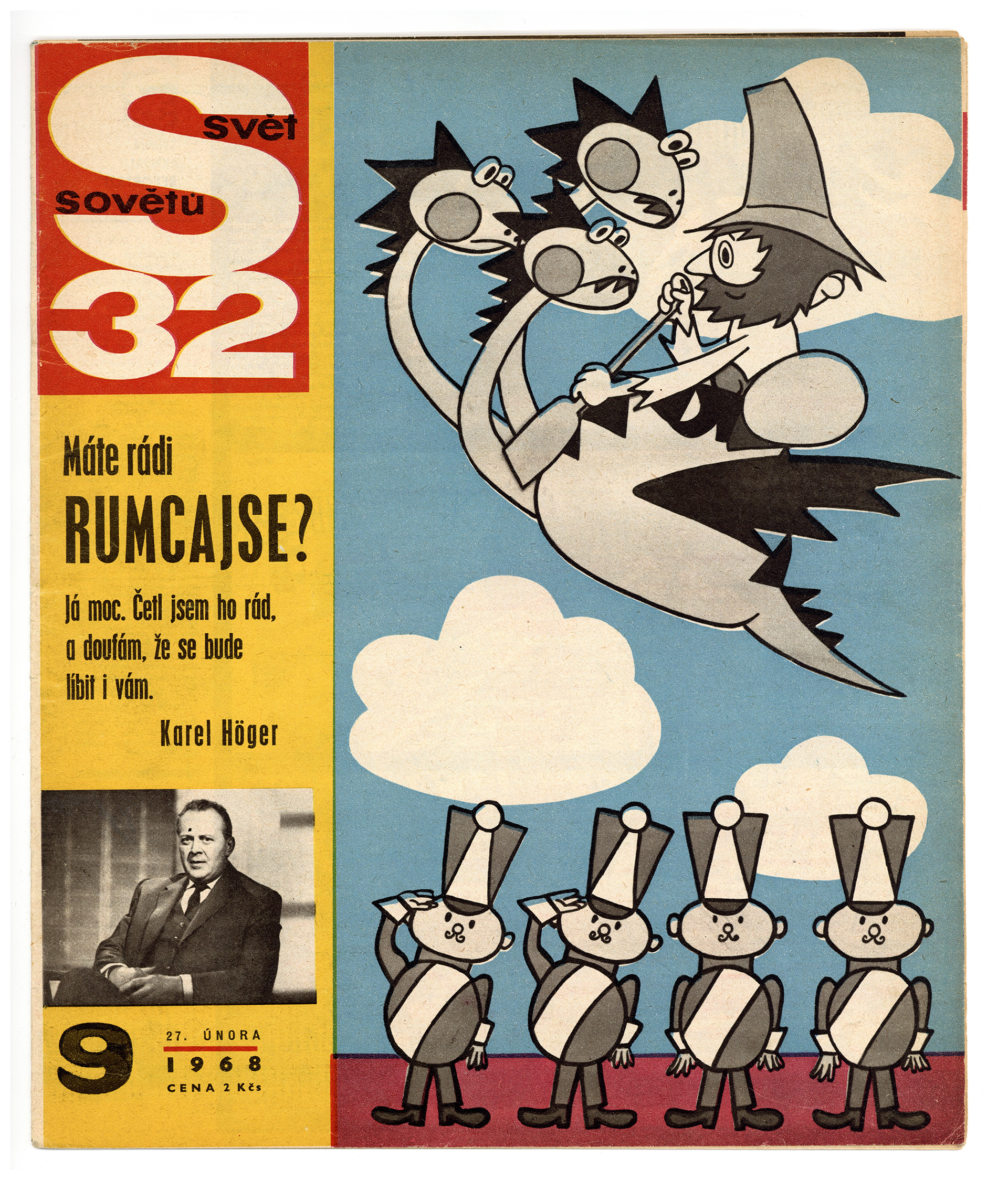 Popis: Kresba Radka Pilaře a snímek Karla Högera, interpreta Rumcajse v populárních televizních Večerníčcích. Obálka týdeníku Svět sovětů. Ofset, 27 × 32 cm.