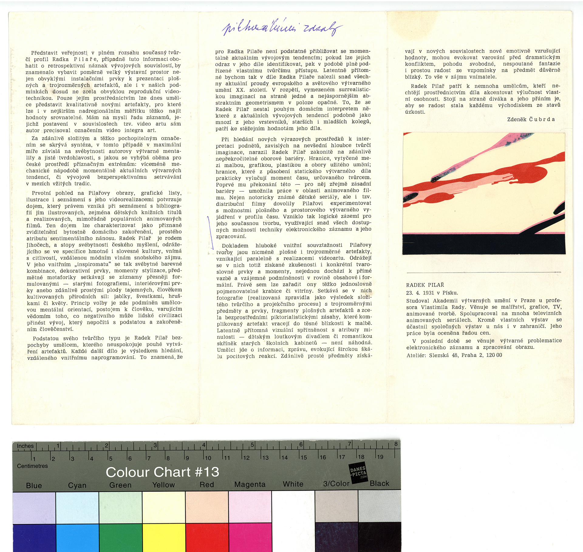 Popis: Skládačka k výstavě, Malá galerie Melantrich, Praha. Text Zdeněk Čubrda.